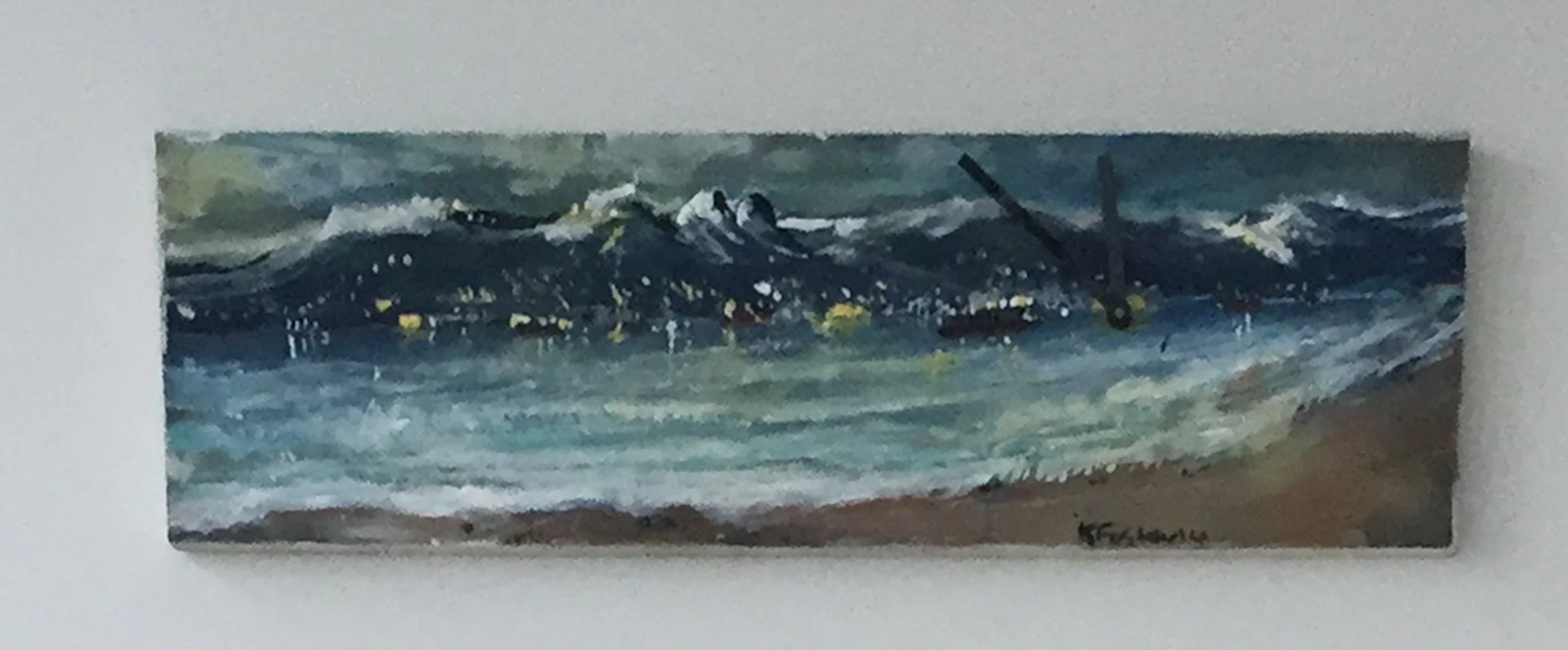 When he came to pickup the last two he noticed a 4”x 12” formerly discarded clock that Ken had painted with a landscape of the city. The clock is now in Will’s collection.