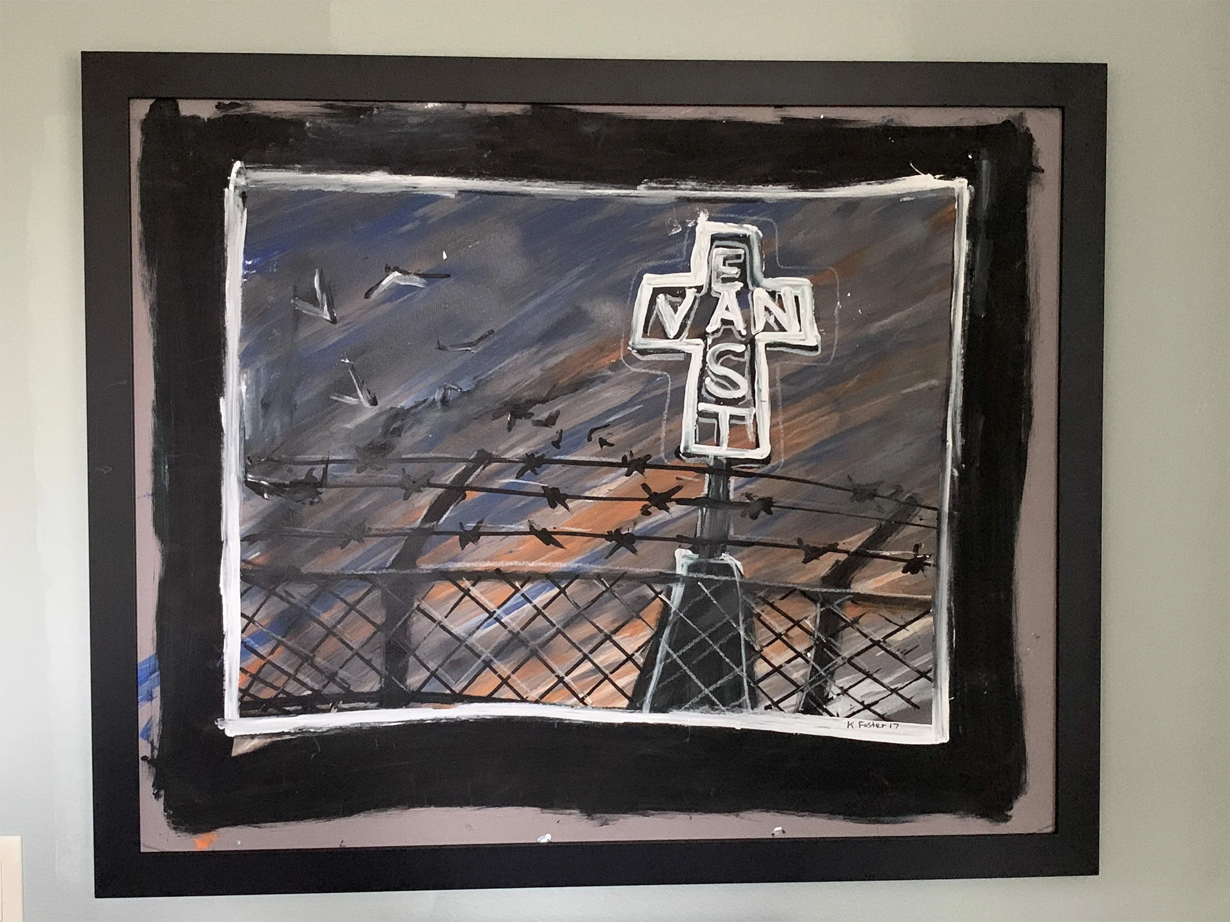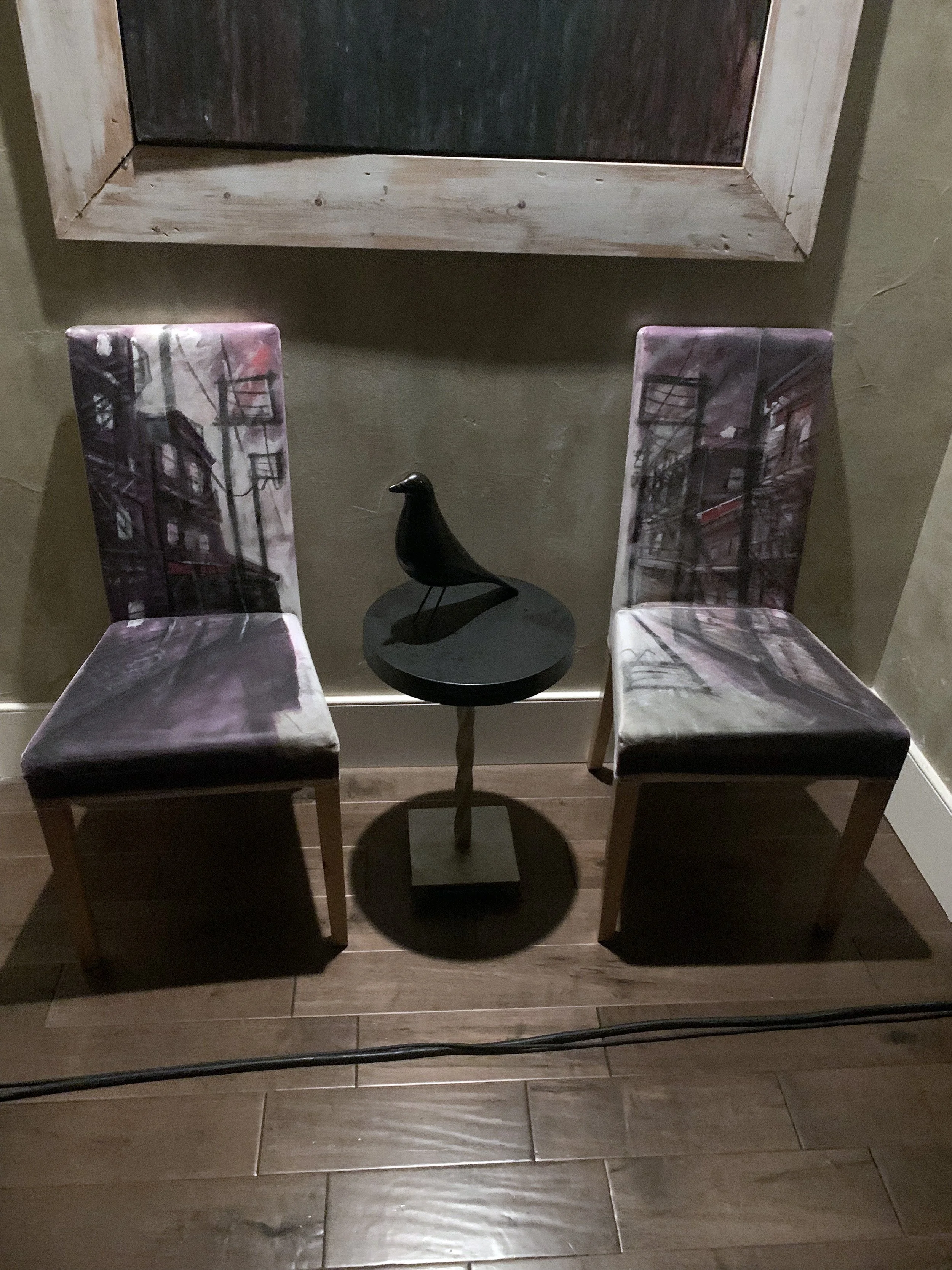 One day Will bought a discarded banquet chair Ken had painted with the iconic East Van sign. Will really liked it and decided he wanted to commission more chairs. Actually it was his mother’s idea to commision more..