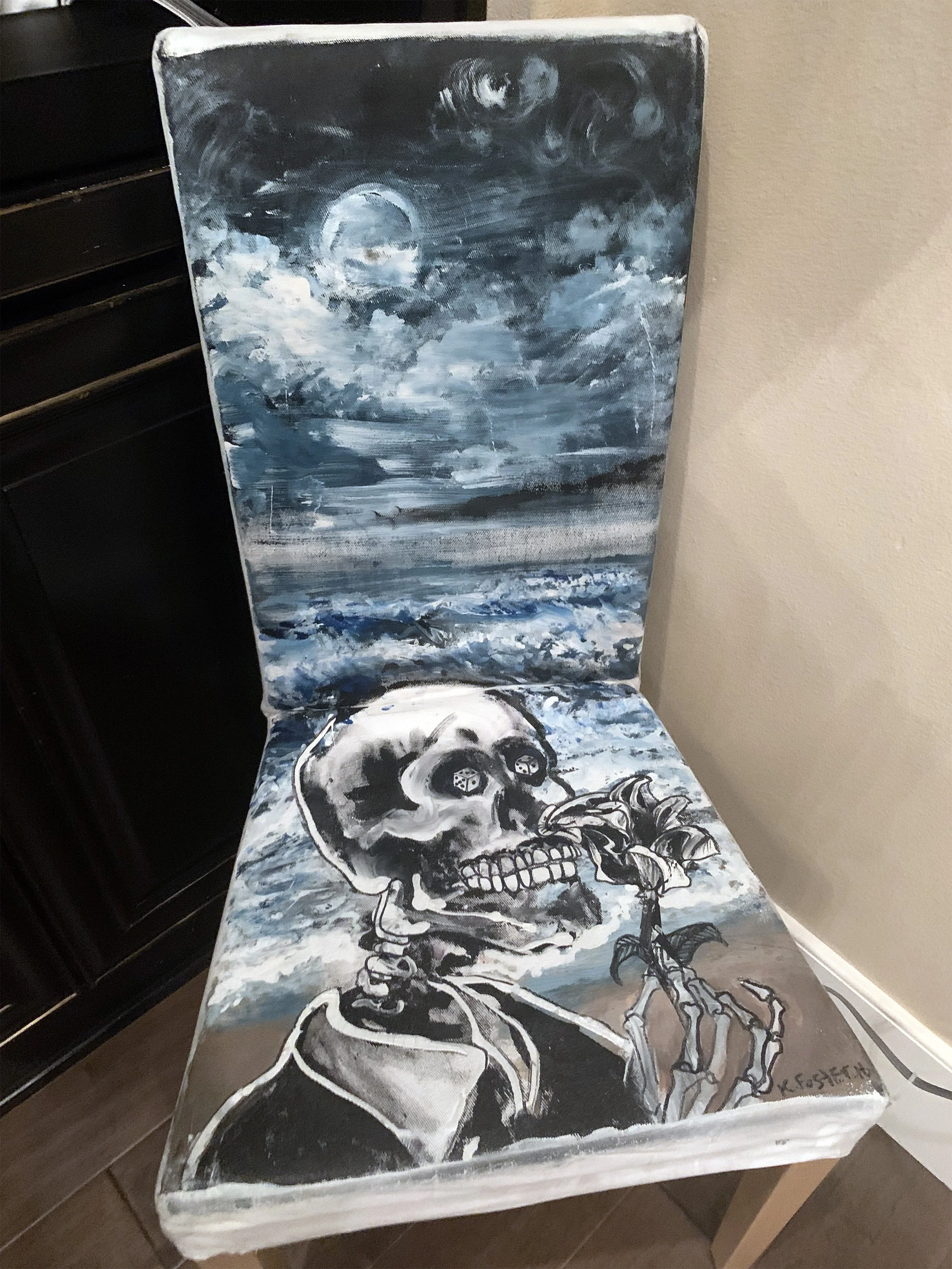 Anyway, Will became an admirer and collector of Ken’s work. Ken paints anything. Chairs, screens, cardboard boxes, you name it.