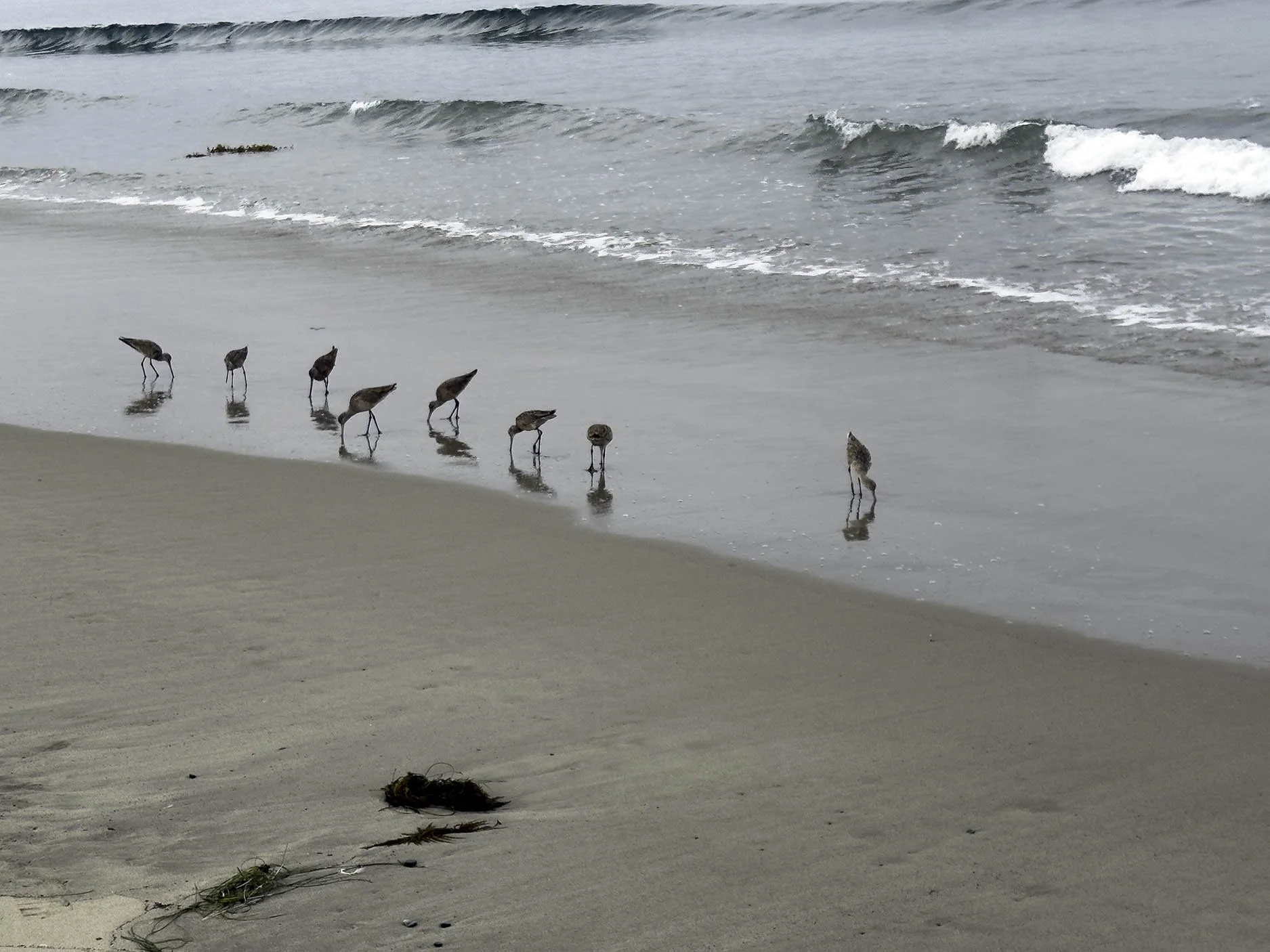 Sometimes the beach is empty save for the huddles of birds clumped together on the sand.
